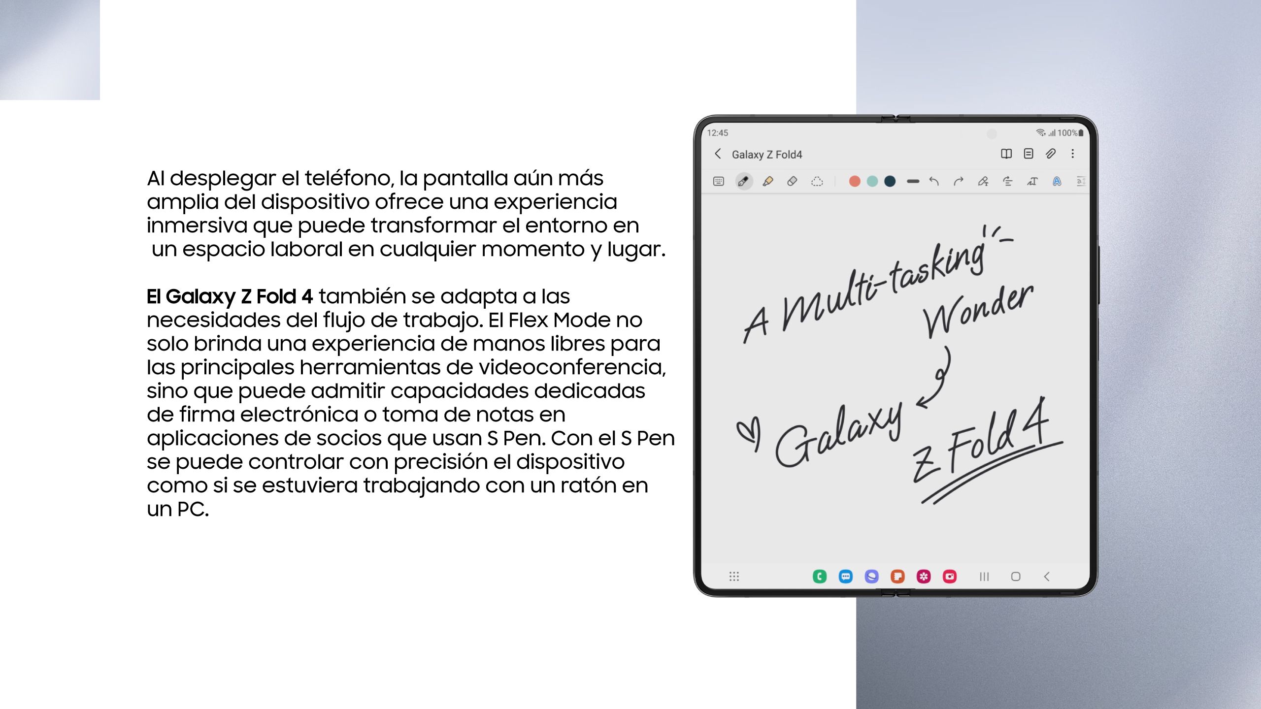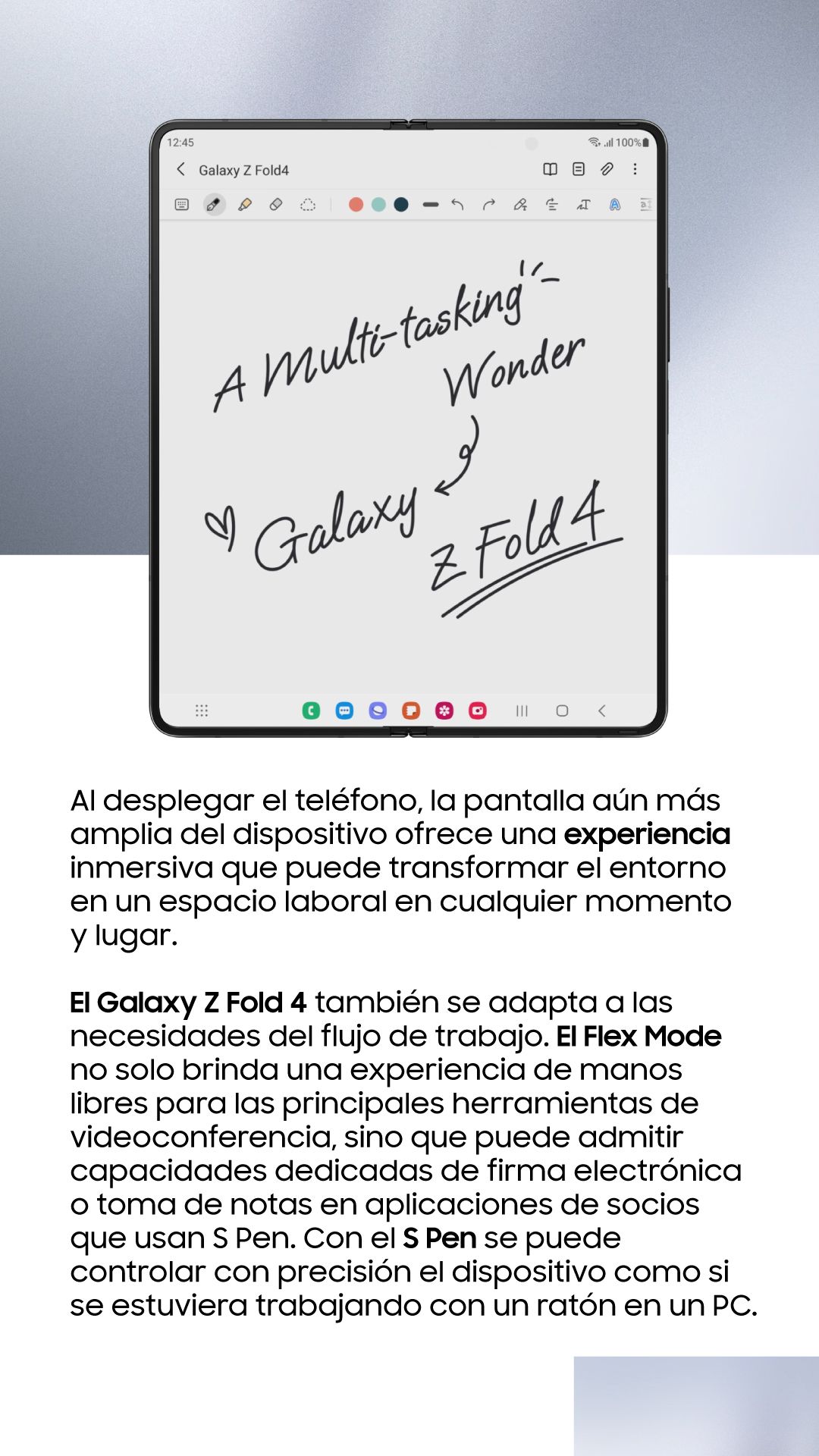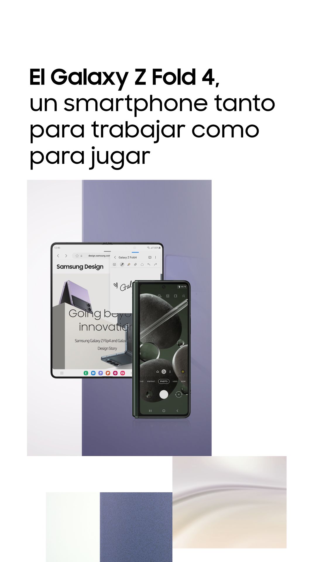 De 0 a 180 grados, el Galaxy Z Fold 4 es un dispositivo panorámico diseñado para adaptarse perfectamente a un estilo de vida único.