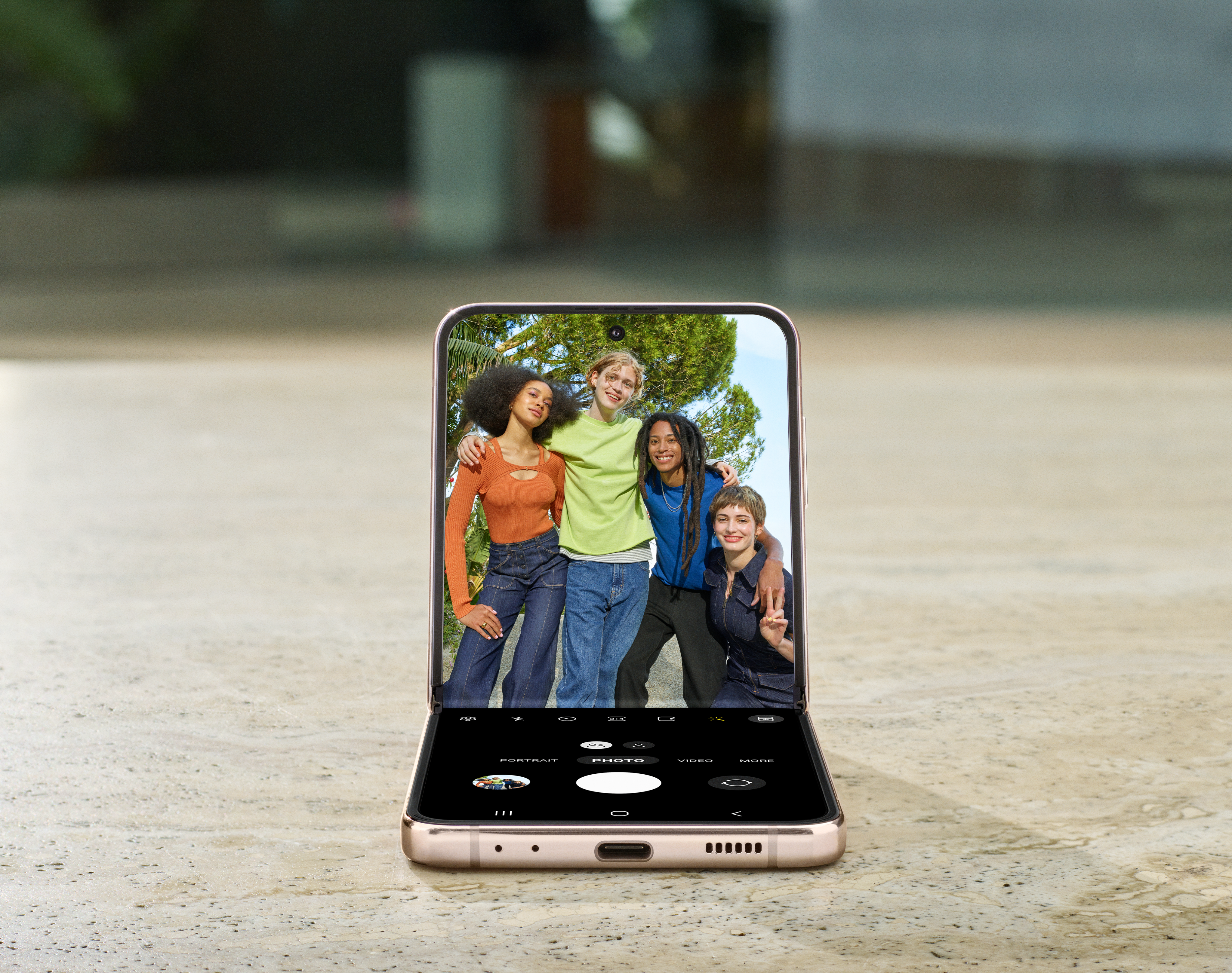 Con FlexCam, inclinando el Z Flip4 5G a 75 grados y colocándolo en el suelo, se pueden lograr fotos de otro nivel.